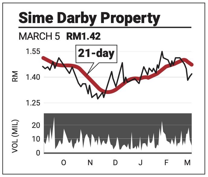 Overhead, the share faces immediate resistance at RM1.45, with next resistance at RM1.56.